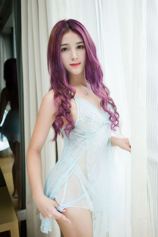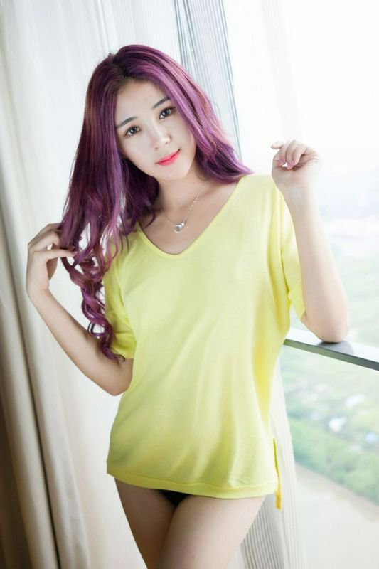 高颜值嫩模Candi紫发飘飘巨臀很翘